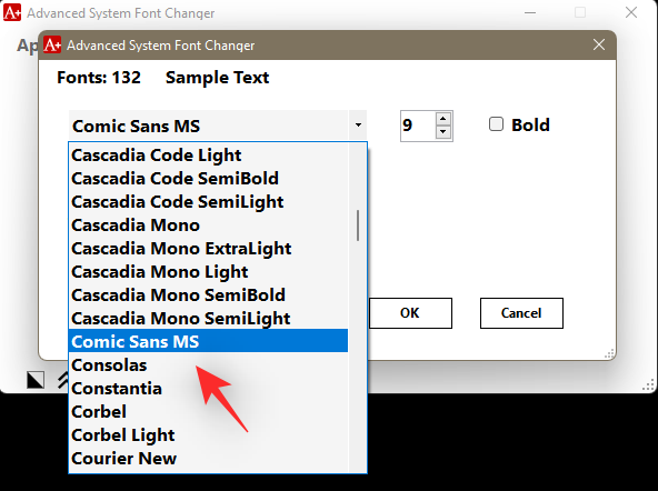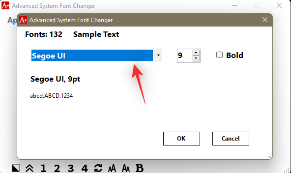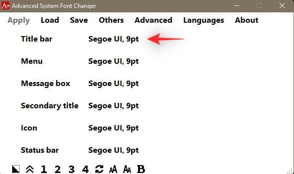 第三方应用程序还可以帮助您通过单击更改 Windows 11 字体。我们建议您尝试上面链接的字体转换器。单击并将该工具下载到本地存储。完成后,启动可执行文件,您现在应该可以选择系统上的字体。让我们以更改系统上的“标题栏”字体为例。单击相同旁边的字体。