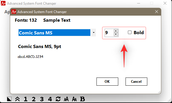 如果需要,更改字体大小,如果您希望在系统标题栏中加粗字体,请选中“粗体”框。