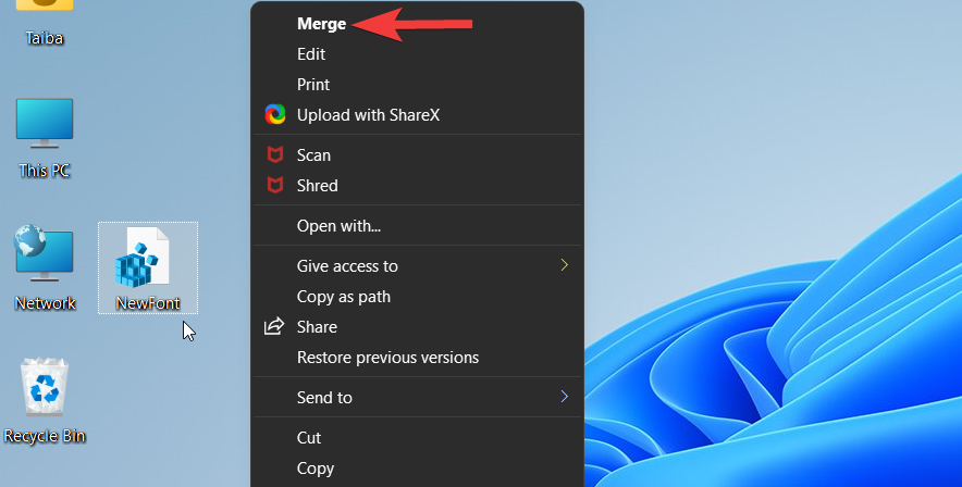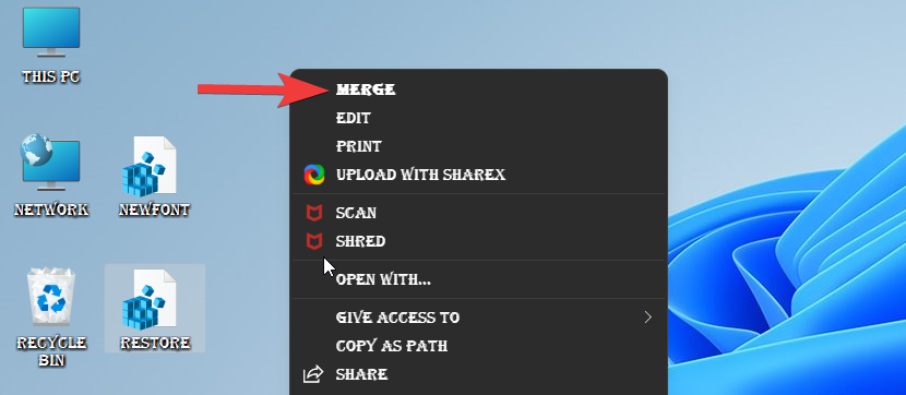 现在转到桌面并右键单击该文件。从上下文菜单中选择“合并”选项。