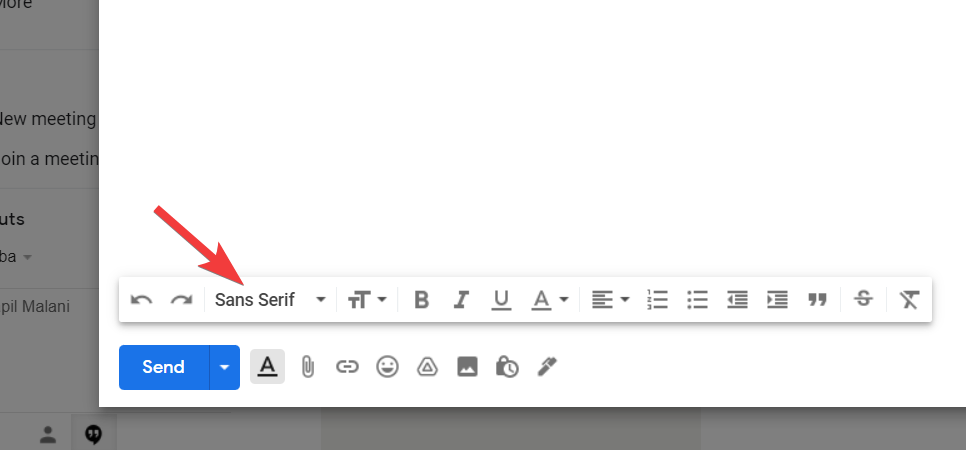 如果您想更改特定电子邮件的字体,您可以在撰写窗口底部找到执行此操作的选项。