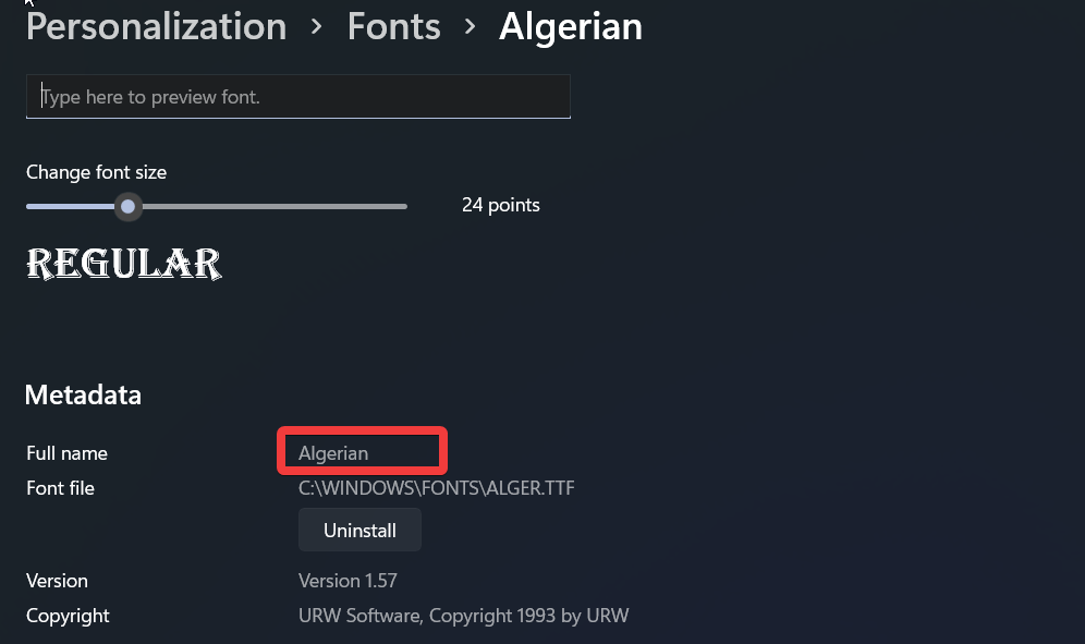 记下您要使用的字体样式的全名,然后关闭“设置”窗口。