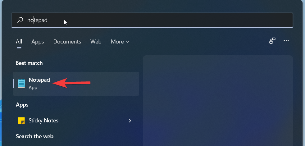 打开开始菜单,在搜索栏中输入“记事本”,然后单击相关搜索结果。