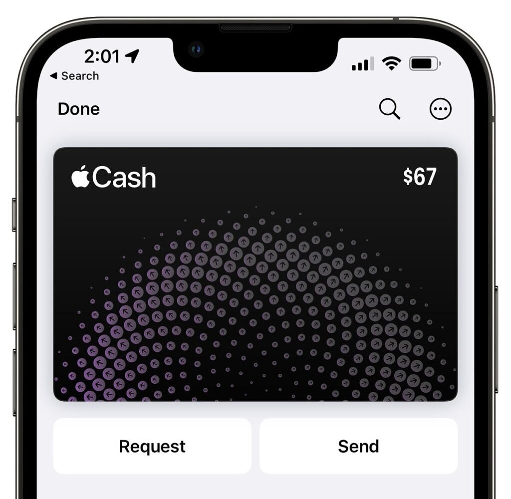 在 Wallet 应用程序中,Apple Cash 卡下现在有两个新按钮。这些使您可以通过 Apple Cash 卡快速请求或汇款。