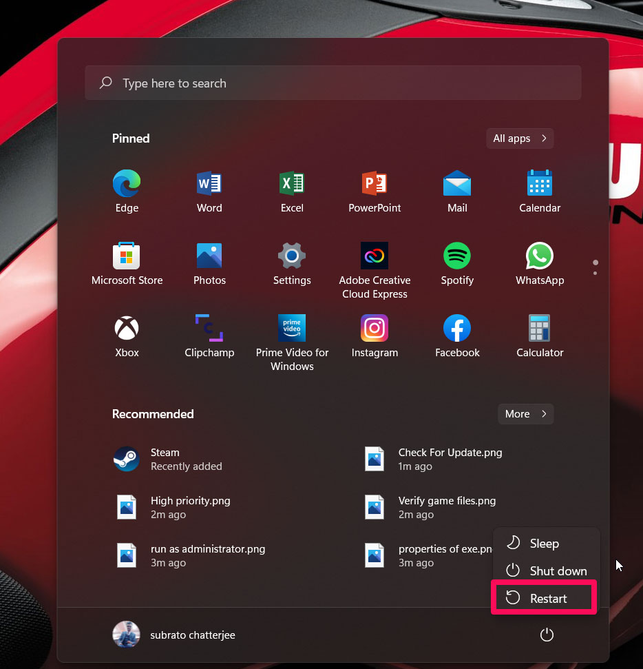 这是一个非常常见的问题,有时它会随机开始出现在您的 Windows 11 PC 上。因此,当您重新启动设备时,它会刷新您的 RAM 并为您的 PC 提供一个全新的开始。但是,我们已经看到,在某些情况下,仅在重新启动设备后该问题就会得到解决。因此,您应该尝试重新启动设备并检查 BSOD 错误是否消失。