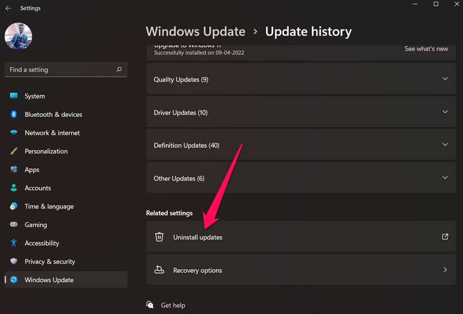 您是否尝试使用兼容模式运行该应用程序,但最终仍会收到视频内存管理内部错误?然后有可能以前的 Windows 更新可能存在一些错误,因此您会遇到此问题。因此,您必须卸载最近的更新;使用这些步骤将帮助您修复此错误: