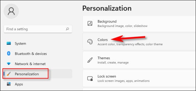 在“设置”中,单击“个性化”,然后在窗口右侧选择“颜色”。