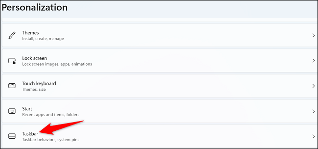 将“任务栏”菜单滚动到底部。在那里,单击“任务栏行为”。