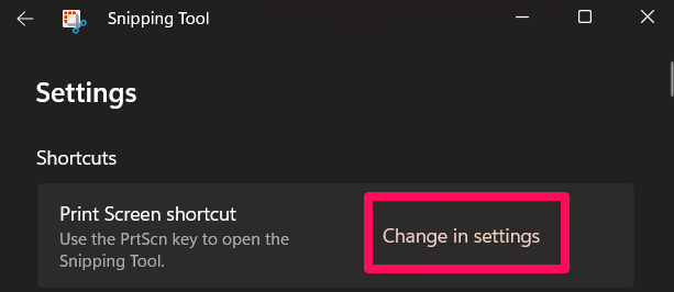 - 然后,点击 打印屏幕快捷方式 并选择 更改设置。