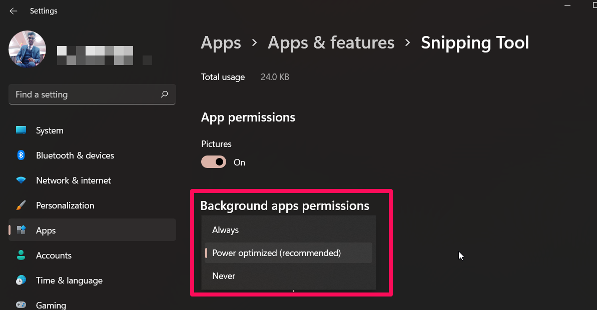 - 您需要为图片启用应用权限。此外,将其设置为Power 优化 权限或 Always 权限。