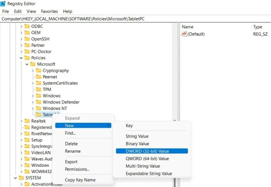 - 然后,选择 New > DWORD (32-bit) 值。
