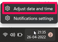 - 首先,右键单击 任务栏右下角的日期和时间 。