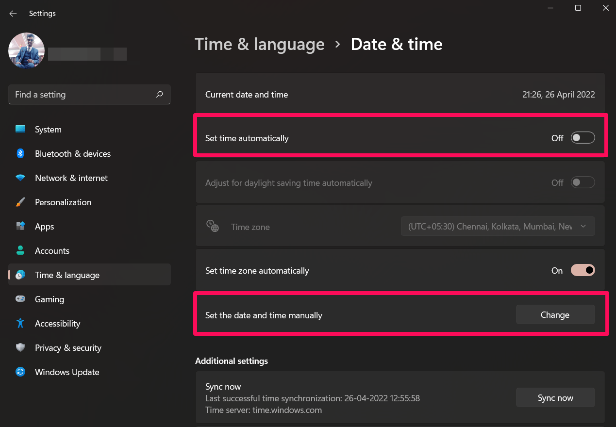 修复 3:手动重置日期和时间