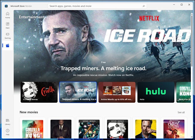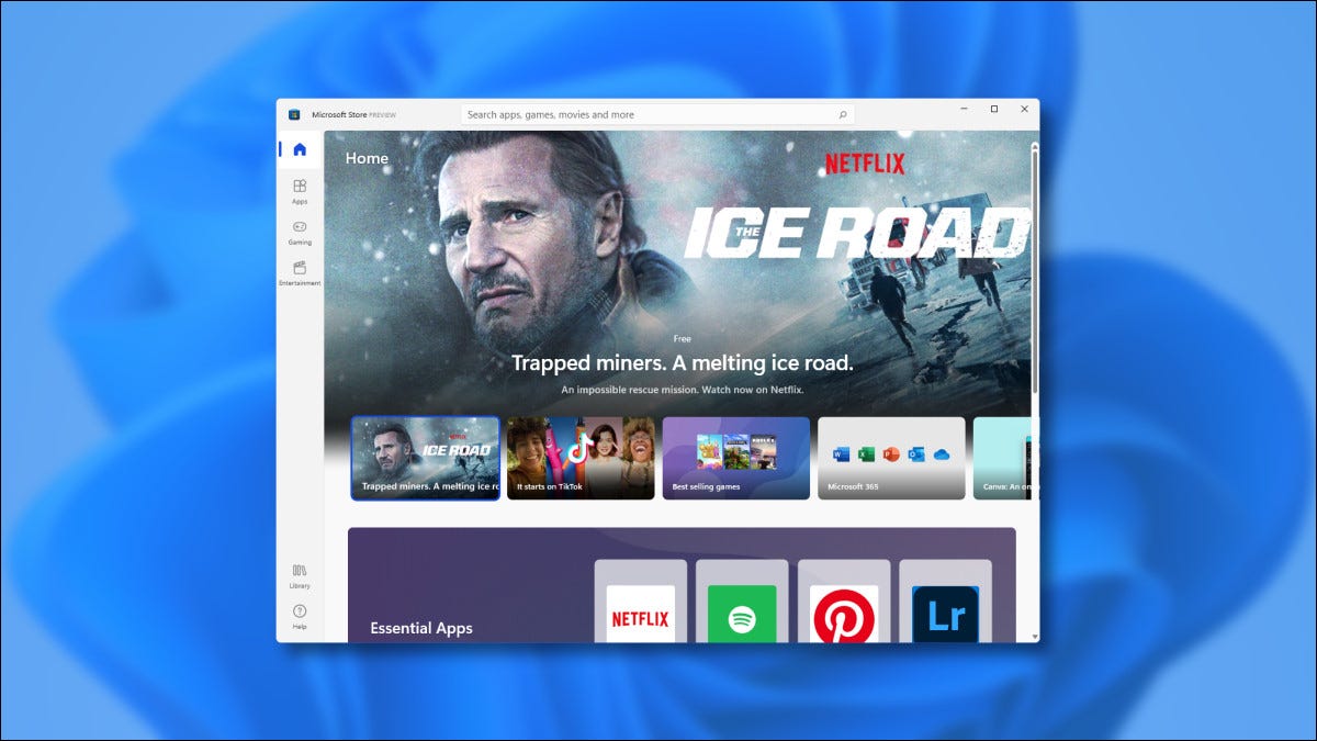 首次启动新的 Microsoft Store 预览时,商店窗口将照常出现在屏幕上,但您会注意到不同的设计和布局。