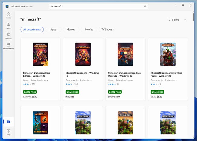 这些类别基本上包含与旧 Microsoft Store 相同的内容,但具有新的布局。当新商店广泛发布时,侧边栏类别图标可能会成为许多人欢迎的功能。