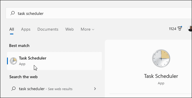 - 打开“开始”菜单并搜索任务计划程序——选择最上面的结果。