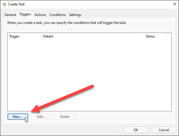 - 接下来,切换到触发器选项卡并单击左下角的新建按钮。