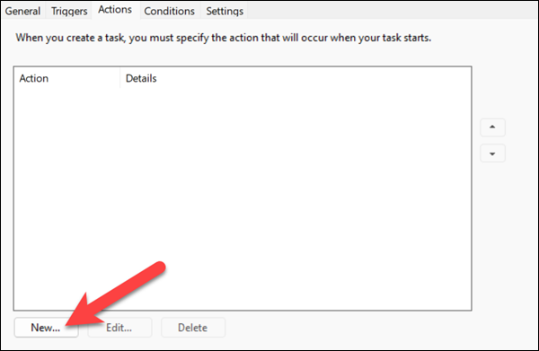 接下来,切换到“操作”选项卡,然后单击“新建”按钮。我们将创建两个操作,一个用于应用程序主题,一个用于系统主题。