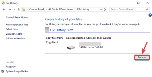Windows 文件历史记录用于将本地存储的文件自动备份到您的首选驱动器,并可从控制面板访问。