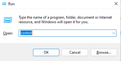 - 在搜索栏中键入controlEnter并点击以打开“控制面板”窗口。