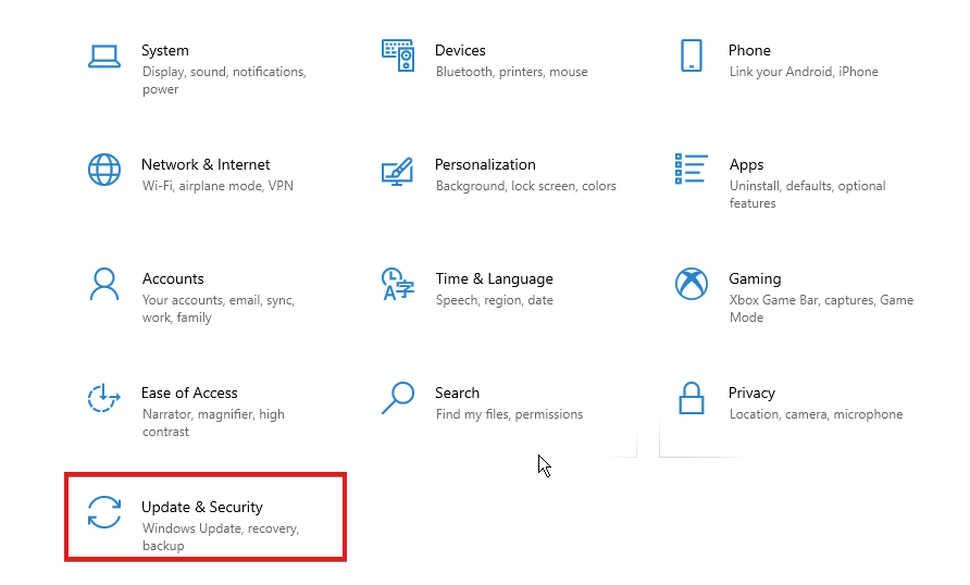 - 单击更新和安全选项。