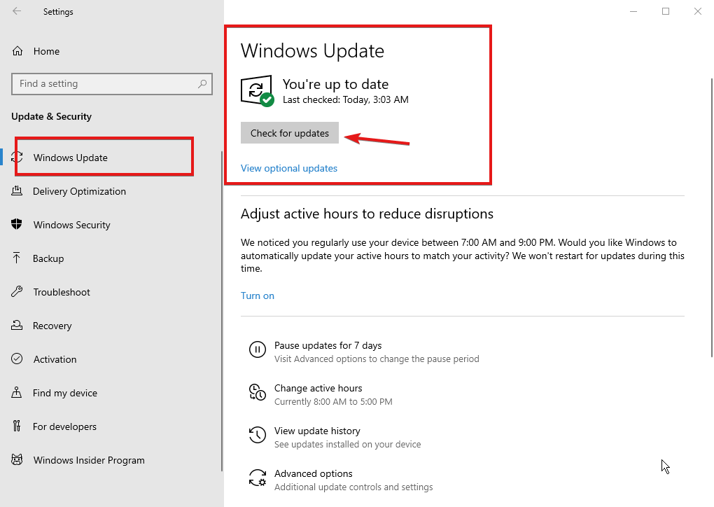 - 选择Windows 更新并单击检查更新。