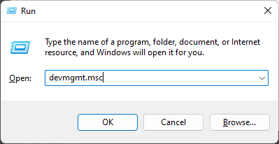 - 键入 devmgmt.msc 并点击Enter。