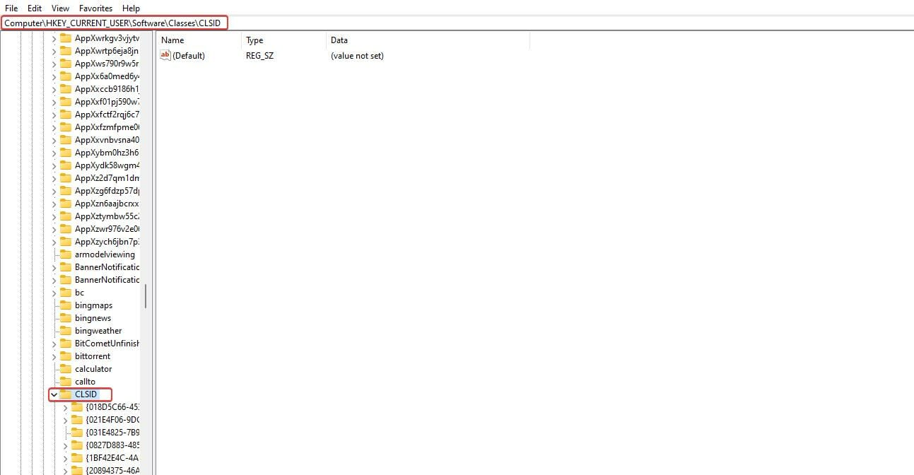 - 要继续禁用在新上下文菜单中显示更多选项的过程,请找到 CLISID 文件夹。您可以复制下面的地址并粘贴到搜索: