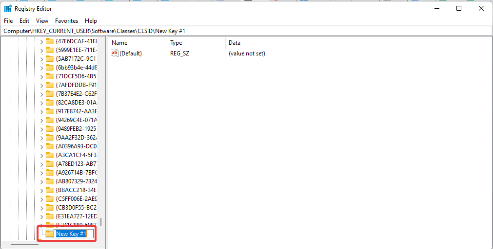 - 右键单击CLSID文件夹,展开New,然后选择Key。或者在右键单击文件夹 (CLSID) 后,然后右键单击窗格中的空白区域。