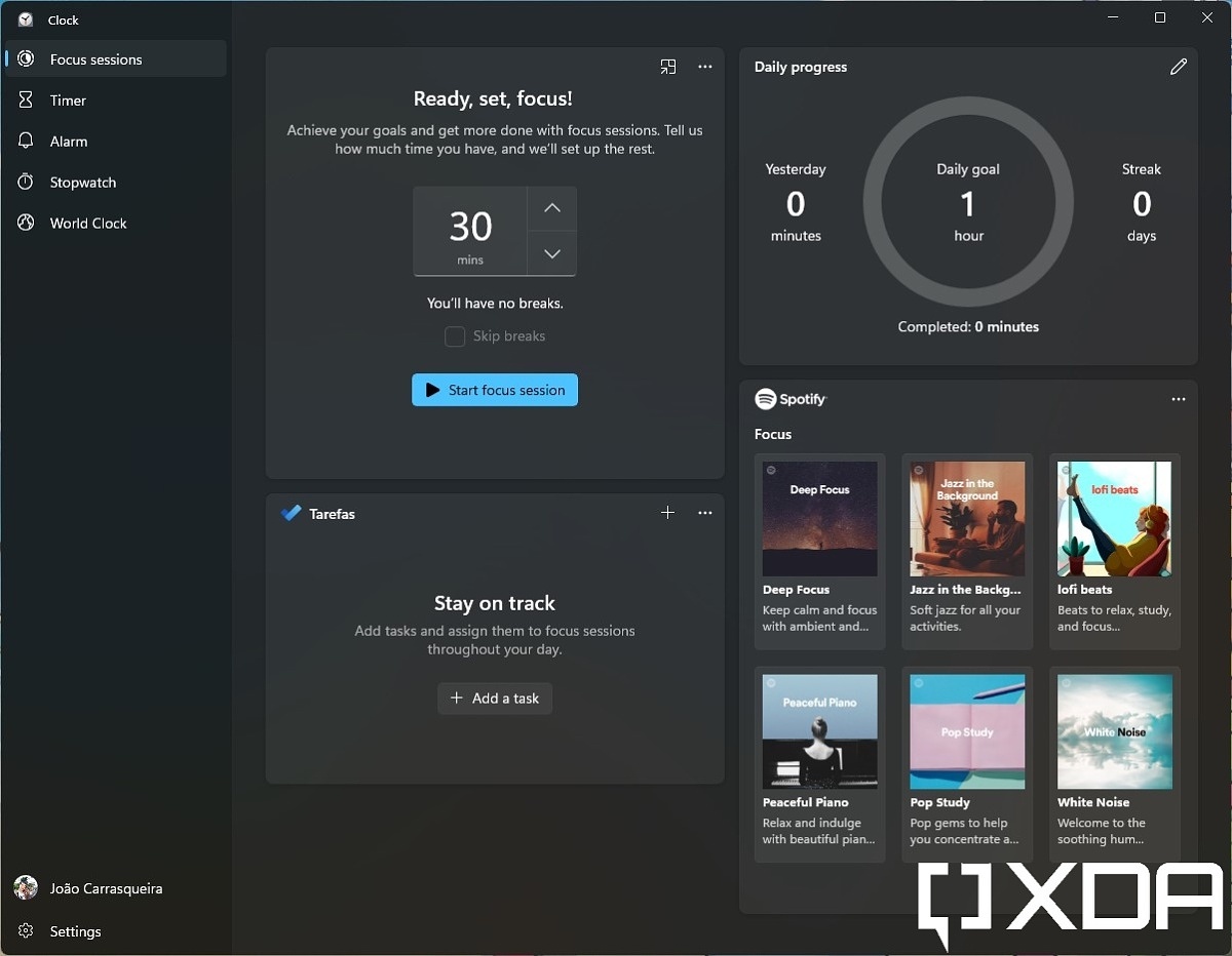 此功能有几个部分。你可以为你的焦点会议设置一个计时器,你甚至可以链接你的 Spotify 来播放背景音乐。它还与微软待办集成,允许您与已安排的任务同步。
