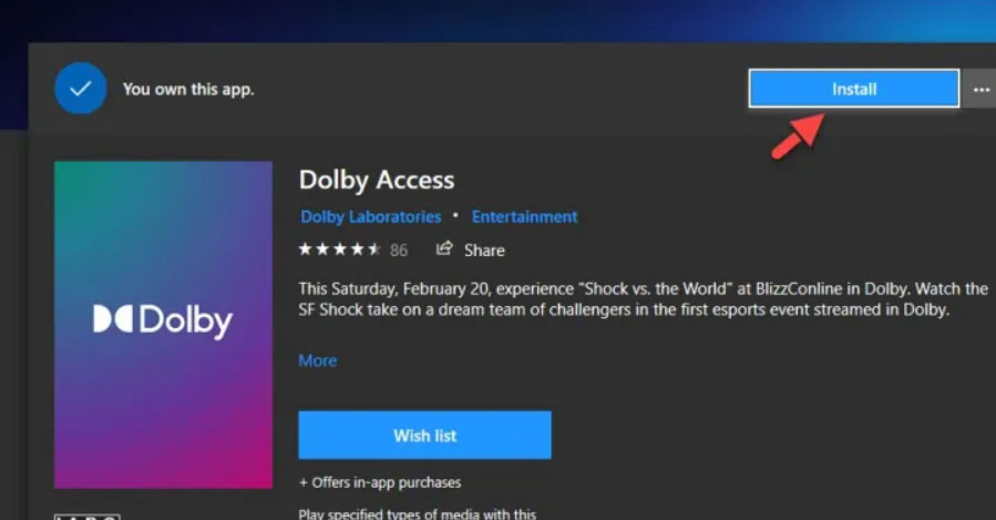 - 而已。现在,Windows 将开始在您的 PC 上安装它。完成后,只需转到桌面,搜索 Dolby Access,然后打开它。如果它正确打开没有任何错误,那么享受体验;否则,请使用下面描述的其他方法。