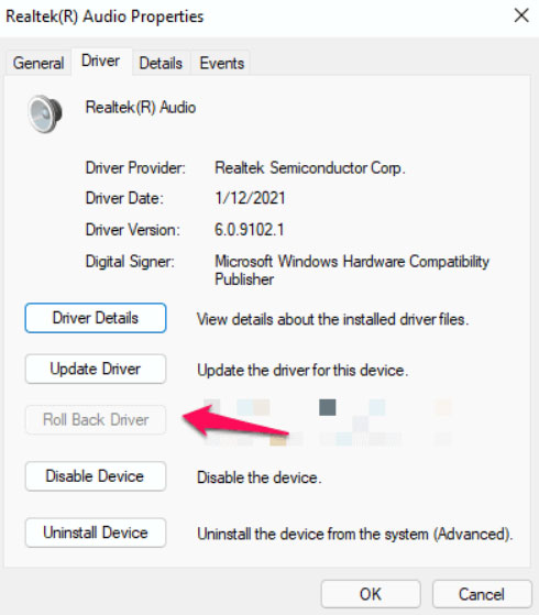 因此,在这种情况下,您可以使用一个按钮将音频驱动程序更新回滚到其先前版本。因此,您可以尝试此操作以解决 Windows 11 PC 出现杜比全景声无法正常工作的问题。那么,让我们看看如何?