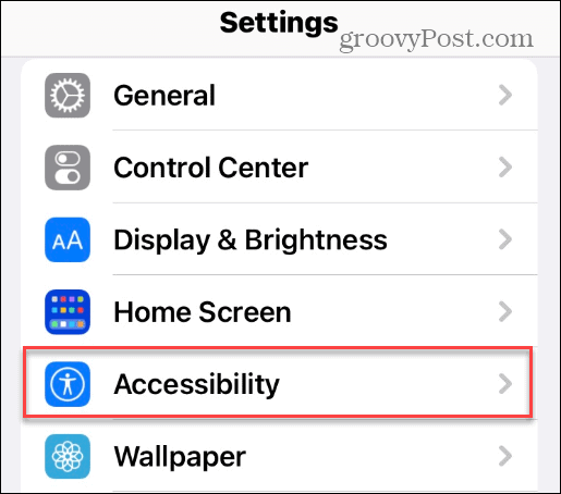 - 向下滚动并点击设置列表中的辅助功能选项。