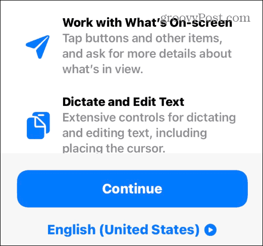 - 当语音控制权限屏幕出现时,点击底部的继续按钮。