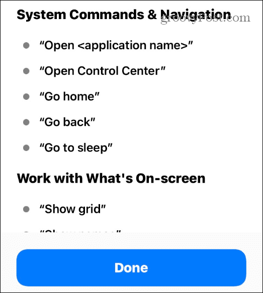 - 将出现您可以说的内容列表。闲暇时通过它,因为您可以使用一些有趣的语音控制。