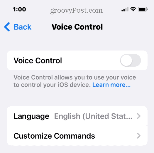 如果您需要禁用语音控制,请前往设置 > 辅助功能 > 语音控制并关闭该功能。蓝色麦克风图标在关闭时不再显示在屏幕上。