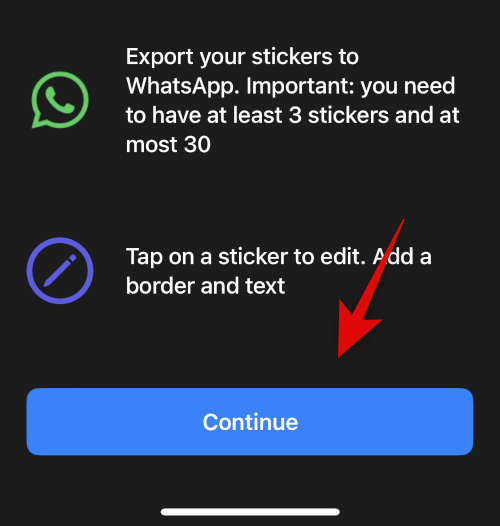 注意:您需要至少三个贴纸和最多三十个贴纸才能将它们导出到 Whatsapp。