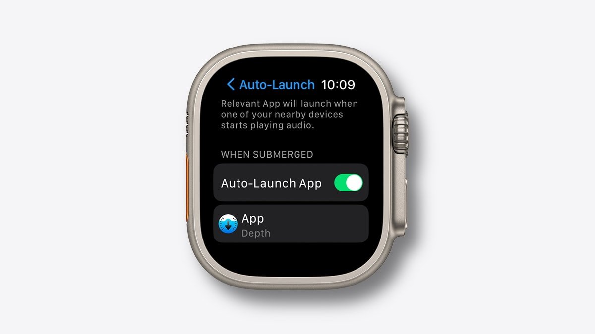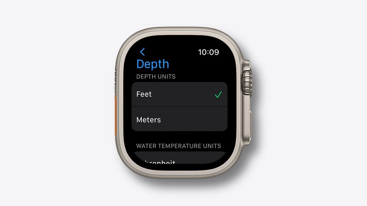 自动或手动打开 Depth 应用程序后,Apple Watch Ultra 的 Water Lock 将打开,以防止在屏幕上或使用 Digital Crown 时意外输入。