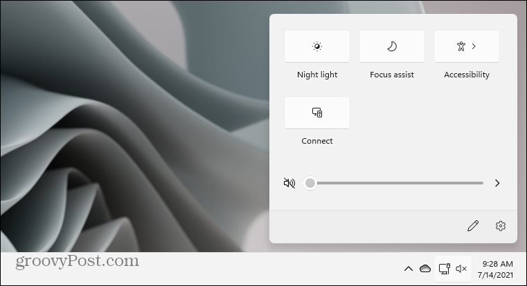快速设置是新操作中心的新部分。它将菜单分解为两个弹出按钮——快速设置和通知中心。菜单包括常用设置,如音量、屏幕亮度、Wi-Fi、蓝牙等。