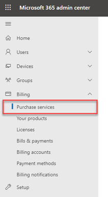 首先,访问admin.microsoft.com以购买您的 Windows 365 商业版许可证,就像购买 Microsoft 365 应用程序或 Microsoft 365 商业高级版等其他许可证一样。
