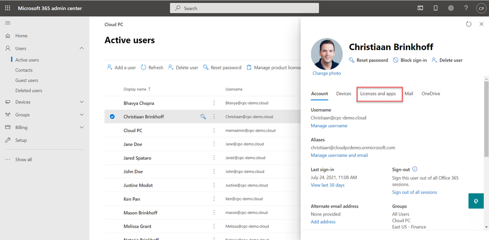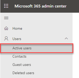 在 Microsoft 365 管理中心的“用户”下,选择“活动用户”。
