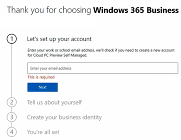 Windows 365 商业版是专为小型公司(最多 300 个席位)设计的 Windows 365 版本。它提供了一种向用户提供云 PC 的简单、简化的方式。