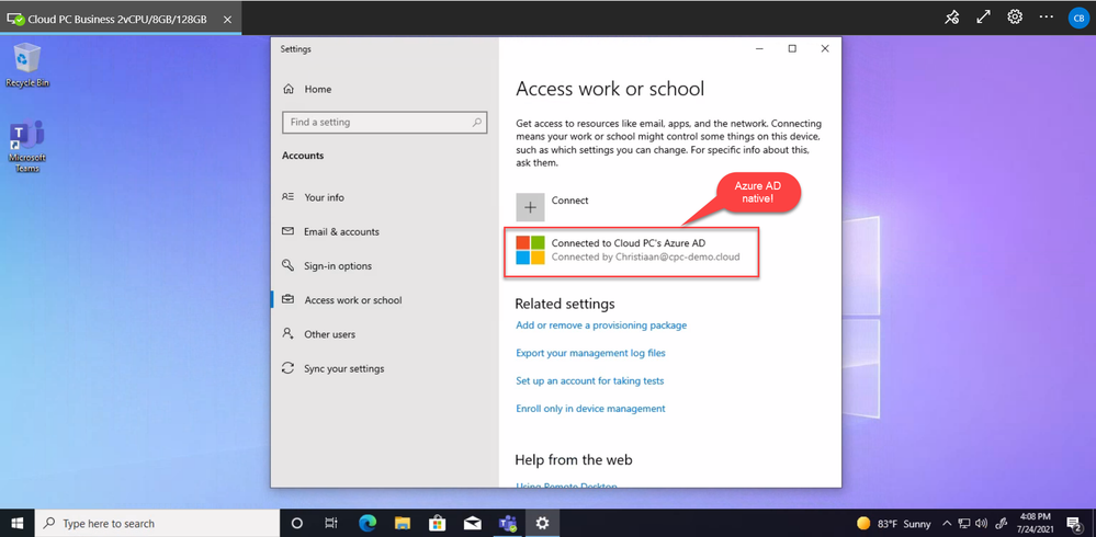 Windows 365 商业版是第一个原生支持 Azure AD 的版本,因此不需要组织拥有现有的 Active Directory 域或 Azure 订阅。