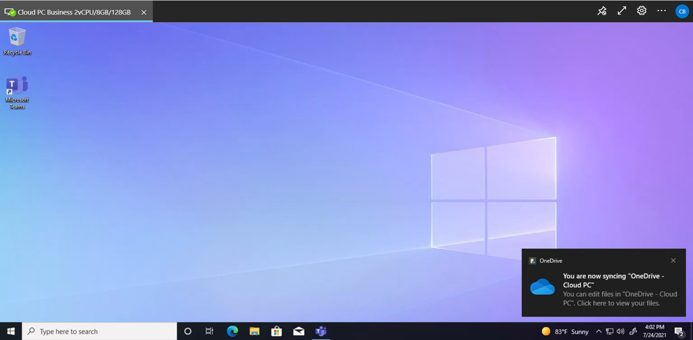 是的,确实如此!:smiling_face_with_smiling_eyes:在不到一小时的时间里,我的云 PC 就可以使用 Microsoft 365 应用程序、OneDrive、Microsoft Edge 和 Teams(优化)来提高工作效率,并且开箱即用!