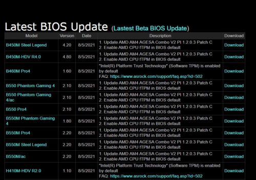 例如,华擎有一份最新的 bios 更新列表。在那里,许多主板目前每天都在更新,并且 TPM(Intel)或 CPU fTPM(AMD)软件默认设置为“启用”。因此,请查看您的制造商或关注相应页面。