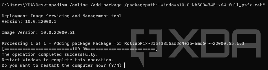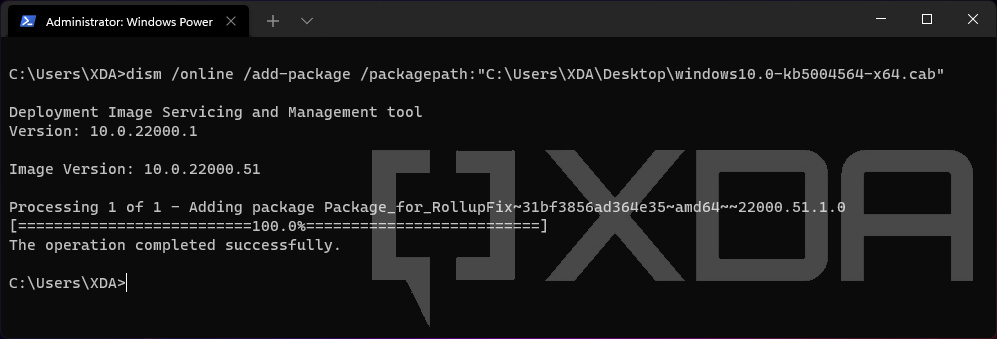要安装 CAB 更新包,您需要使用称为部署映像服务和管理 (DISM) 的内置系统实用程序。该命令行语法应该如下: