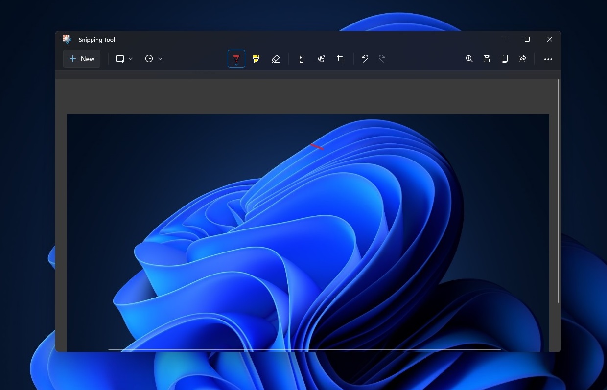 在使用 Snip & Sketch 的界面和功能的新 Snipping Tool 窗口中,您可以访问注释、裁剪等编辑工具。此外,截图工具窗口现在支持您的 Windows 主题——它会自动在暗模式和亮模式之间切换。