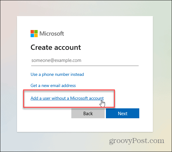 接下来,单击列表底部的“添加没有 Microsoft 帐户的用户”链接。