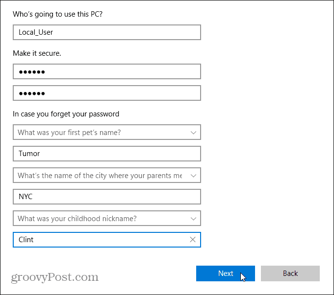 拥有本地用户帐户可避免创建 Microsoft 帐户。这可确保您的设置和文件仅在机器本地可用,以获得更私密的体验。但是,请记住,如果不使用 Microsoft 帐户,这些项目将不会同步到您的其他计算机。