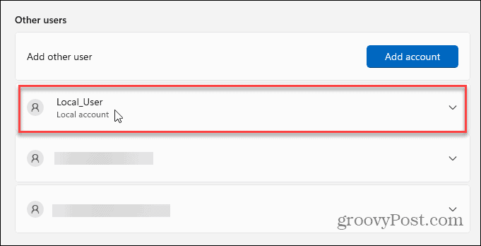 现在,您将在“设置”屏幕上看到新的本地用户已添加到您的 Windows 11 PC。它将像您使用 Microsoft 帐户添加用户一样列出。