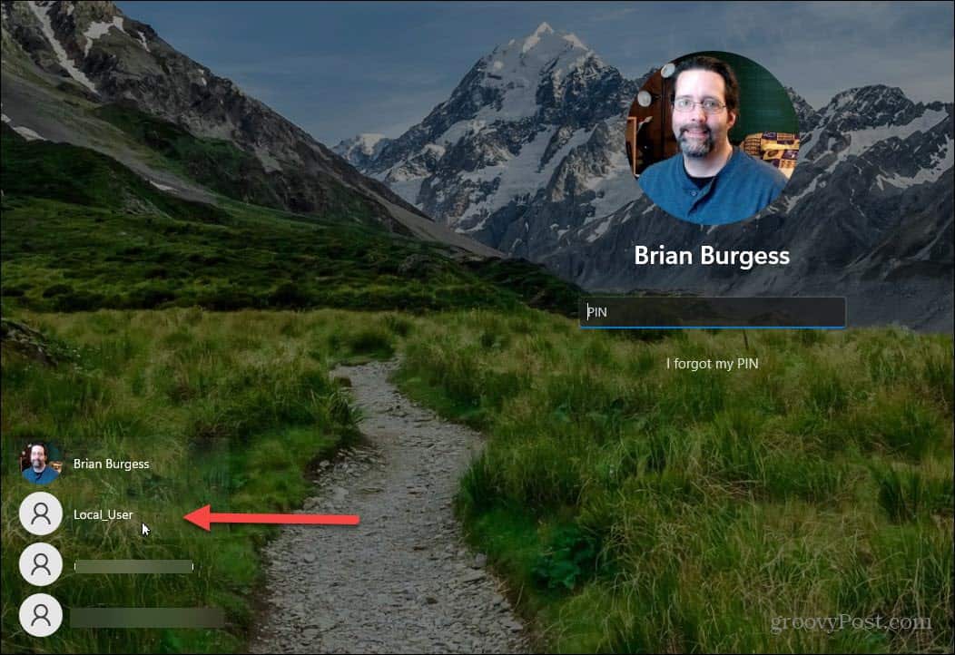 注销您的帐户,您将在屏幕左下角看到您添加的用户。本地用户需要单击他们的名字并使用您分配给他们的密码登录。